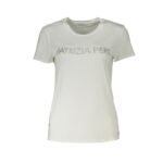 Patrizia Pepe valge T-särk on kaunistatud säravate kivikeste ja ikoonilise logoga. Mudel on valmistatud elastaani, viskoosi ja orgaanilise puuvilla segust ning valmistatud Rumeenias.