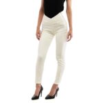 Viimistletud detailid ja luksuslik hoiak. Patrizia Pepe valged kitsad püksid.