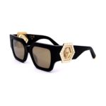 Philipp Plein naiste päikeseprillid SPP103S SHINY GREY GOLD on hallide toonidega läätsede ja kuldse raamiga. Mudelil on UV400 kaitse.