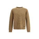 Prada beež dressipluus on ümara kaelusega, karbilise siluetiga ja viimistletud tekstuuriga. Mudel on kootud siledas koes ning sellel on soonikkoes äärised, raglaanõlad, soonikkoes kätised ja alläär ning viimistluseks signatuurne toon-toonis kootud kolmnurklogo.