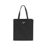 Prada Re-Nylon tote-kotil on funktsionaalne ja elegantne disain. Mudelil on kaks nahast käepidet, ees ikooniline kolmnurkne plaat ning reguleeritav ja eemaldatav nailonist õlarihm.