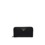 Ajatu aktsent luksusliku viimistlusega igapäevaseks kasutuseks. Prada must rahakott, esiküljel kolmnurkne logokiri.