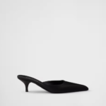 Viimistletud detailid ja luksuslik hoiak. Prada mustad sabot-kingad metallist logokirjaga.