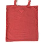 Viimistletud detailid ja luksuslik hoiak. Prada punane-valge õlakott shopper logodetailidega.