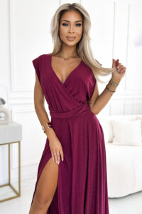 Numoco bordoopunane sädelev pikk kleit 509-3