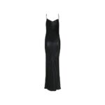 Saint Laurent must vabaaja kleit on V-kaelusega ja seljal sügava ümara kaelusega.