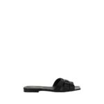 Viimistletud detailid ja luksuslik hoiak. Saint Laurent mustad lamedad sandaalid punutud eesosaga.