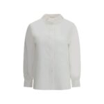 Ajatu siluett ja viimistletud detailid luksusliku hoiakuga. Saint Laurent valge särk on nööpkinnituse ja Pierrot kraega.