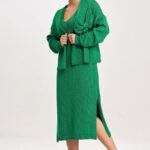 Stiilne kooslus pidulikeks hetkedeks ja igapäevaseks kandmiseks. Figl komplekt sisaldab midi-kleiti ja boolerot dekoratiivse lipsuga.