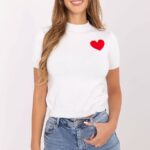 Ajatu valik igapäevaseks kandmiseks. Factory Price lühikeste varrukatega džemper mudel 220372 südamekujuliselt trükitud detailiga.