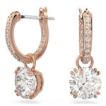 Swarovski roosa kullatooni kõrvarõngad 5639975. Mudelil on roosa kullatoonis viimistlus ja Swarovski sära.