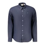 Timberland sinine meeste särk on kitsas lõikega mudel. Särgil on nööpidega krae, ühe nööbiga mansetid ja ikooniline tikitud logo.