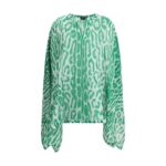 Tom Ford kaftankleit on elegantne ja sensuaalne rõivaese, mis on valmistatud poolläbipaistvast kangast ning rõhutab disaini kergust. Esiküljel V-kaeluse ja asümmeetrilise siluetiga mudelit iseloomustab särtsakas loomamustriline muster, mis lisab julge ja rafineeritud aktsendi.