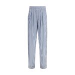 Tom Ford vabaajapüksid on triibulise mustriga ja valmistatud siidist. Mudelil on seesmine elastne värvel, kontrastne kandiga viimistlus ning varjatud eesmine kinnitus TF-signatuuriga sarvenööpidega.