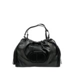 Ajatu siluett ja viimistletud detailid luksusliku hoiakuga. Twinset must käekott magnetkinnitusega ning ees logoga.
