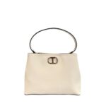 Twinset valge käekott on reguleeritava õlarihma ja sisemiste sektsioonidega mudel. Magnetnööpkinnitus hoiab esemed kindlalt paigal ning kuldset tooni metallosad ja Twinset logo täiendavad disaini.