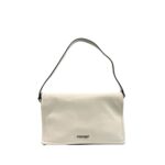 Twinset valge õlakott on reguleeritava õlarihma, magnetnööbiga klapi, hõbedatooni metalldetailide ja esiküljel oleva logoga. Mõõdud on 28x19x8 cm.