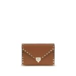 Viimistletud detailid ja luksuslik hoiak. Valentino Garavani pruun rahakott Rockstud, metallidetailidega.