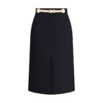 Valentino mustal midiseelikul on viimistletud disain. Mudelil on tagumine lukkkinnitus, kaks külgmist kantpaspeltaskut ning sisseehitatud nahkvöö, mis rõhutab taljet; eesmine lõhik lisab detaili.