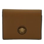 Viimistletud detailid ja luksuslik hoiak. Versace pruun kompaktne rahakott Medusa pea logoga.