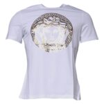 Viimistletud detailid ja luksuslik hoiak. Versace valge T-särk Medusa trükiga.