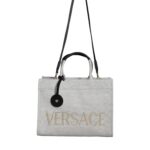 Versace üleõlakott on valges ja mustas värvitoonis ning kaunistatud brändi logoga.
