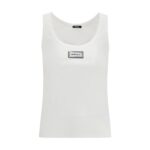 Versace valge topp on valmistatud soonikulisest venivast puuvillast ning varrukateta disaini täiendab ümar kaelus. Ees olev žakaartehnikas ’90s Vintage Logo embleem lisab iseloomuliku Versace aktsendi.