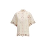 Zimmermann Patience Shirt on romantilise ja õhulise ilmega särk. Mudel on valmistatud kergest linasest lillemustrilise trükiga ning sellel on kõrge kaelus, sakilised servad ja lillemotiiviga detailid, mis pehmelt rõhutavad pinda; ees on nööpkinnitus.